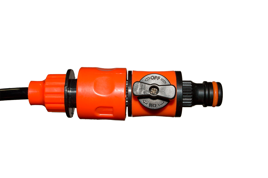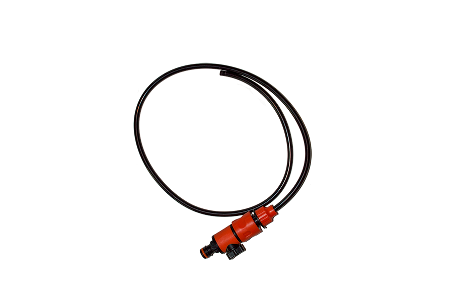 Den sorte 8mm vandslange med ventil , er for tilkobling af vand, med regulering af vandmængden.