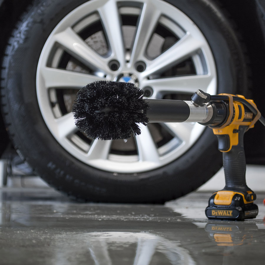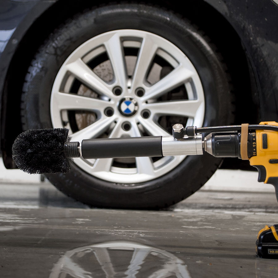 Ved at montere den i en batteriboremaskine, har du masser af kraft og hastighed, som gør det til en leg at gøre fælge rene, på ingen tid. Med ventilen kan du regulere vand mængden, som gør at den typisk kun bruger 25% af hvad lignende børster bruger.